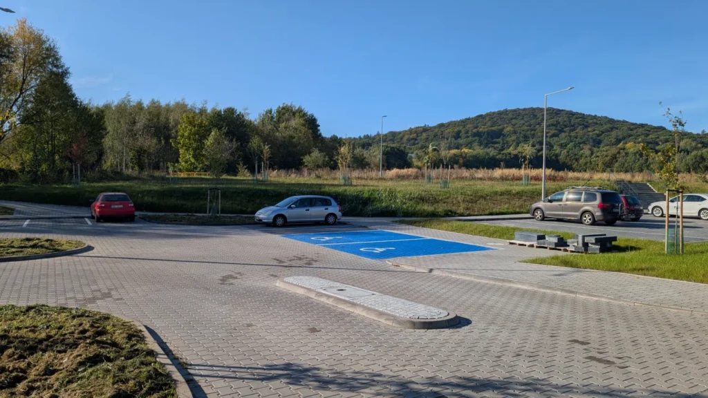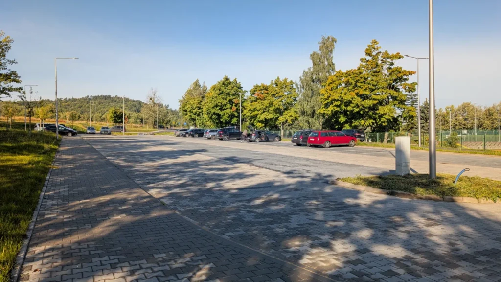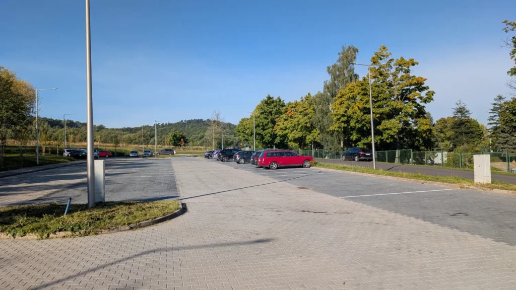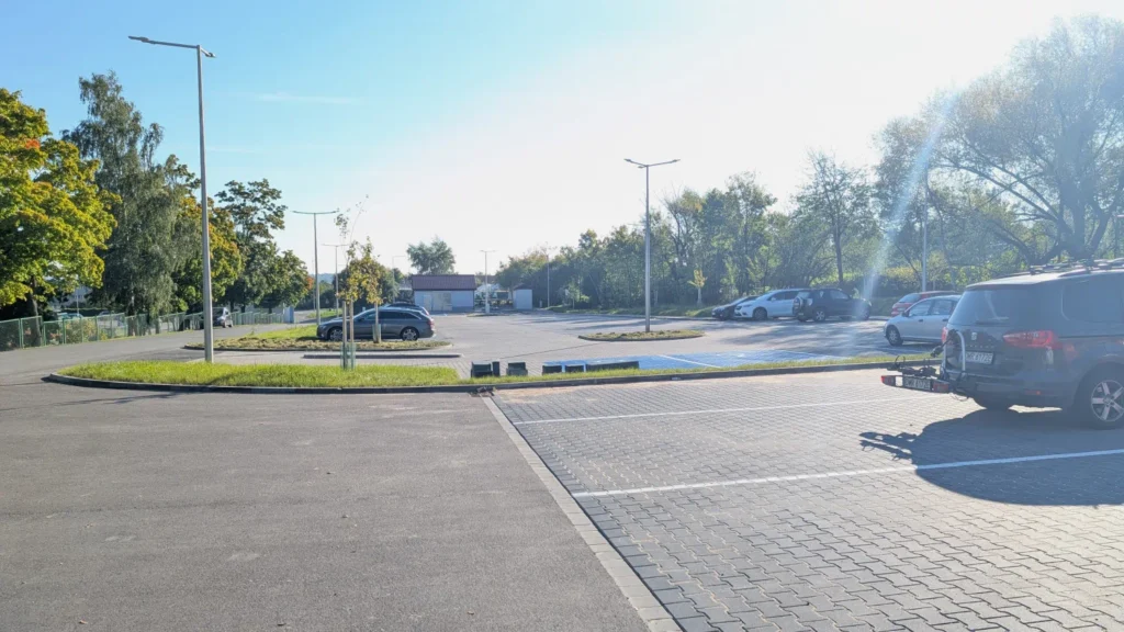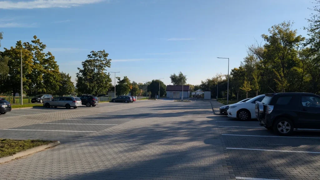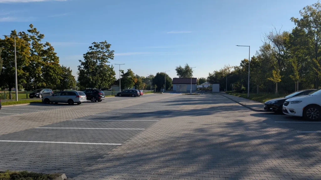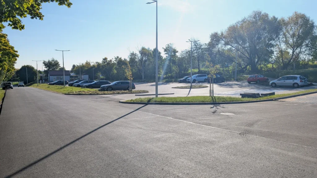 Nowy parking wybudowany w 2025 roku, zlokalizowany przy Stadionie Miejskim w centrum Sobótki.